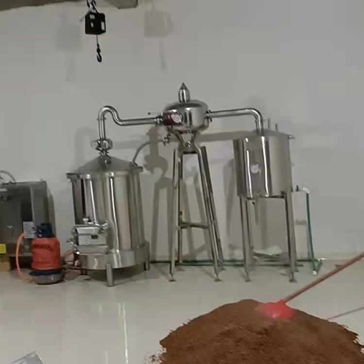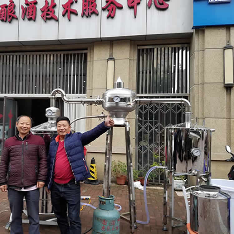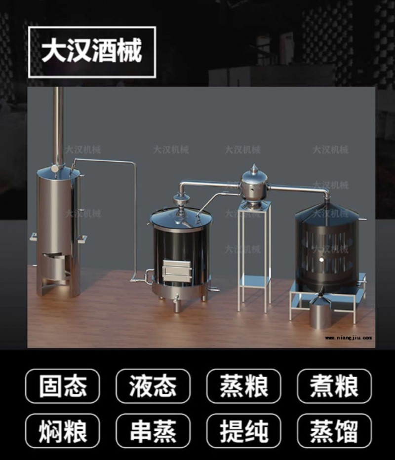1、蒸馏设备出酒快:只需半个小时左右出酒,200斤粮食需2个小时左右即可蒸馏完毕。
